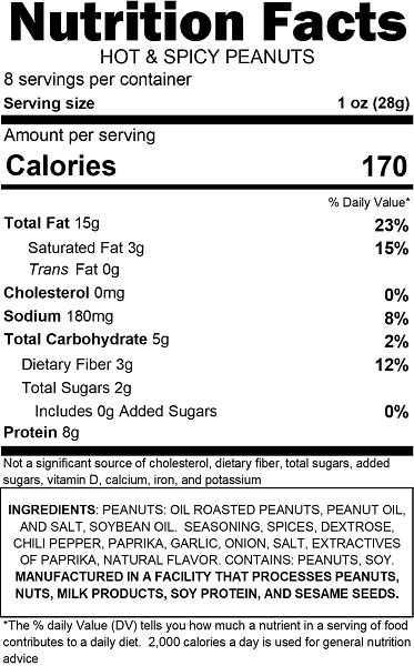 Mile High Munchies Hot & Spicy Peanuts - this treat packs some heat! Also high in protein.