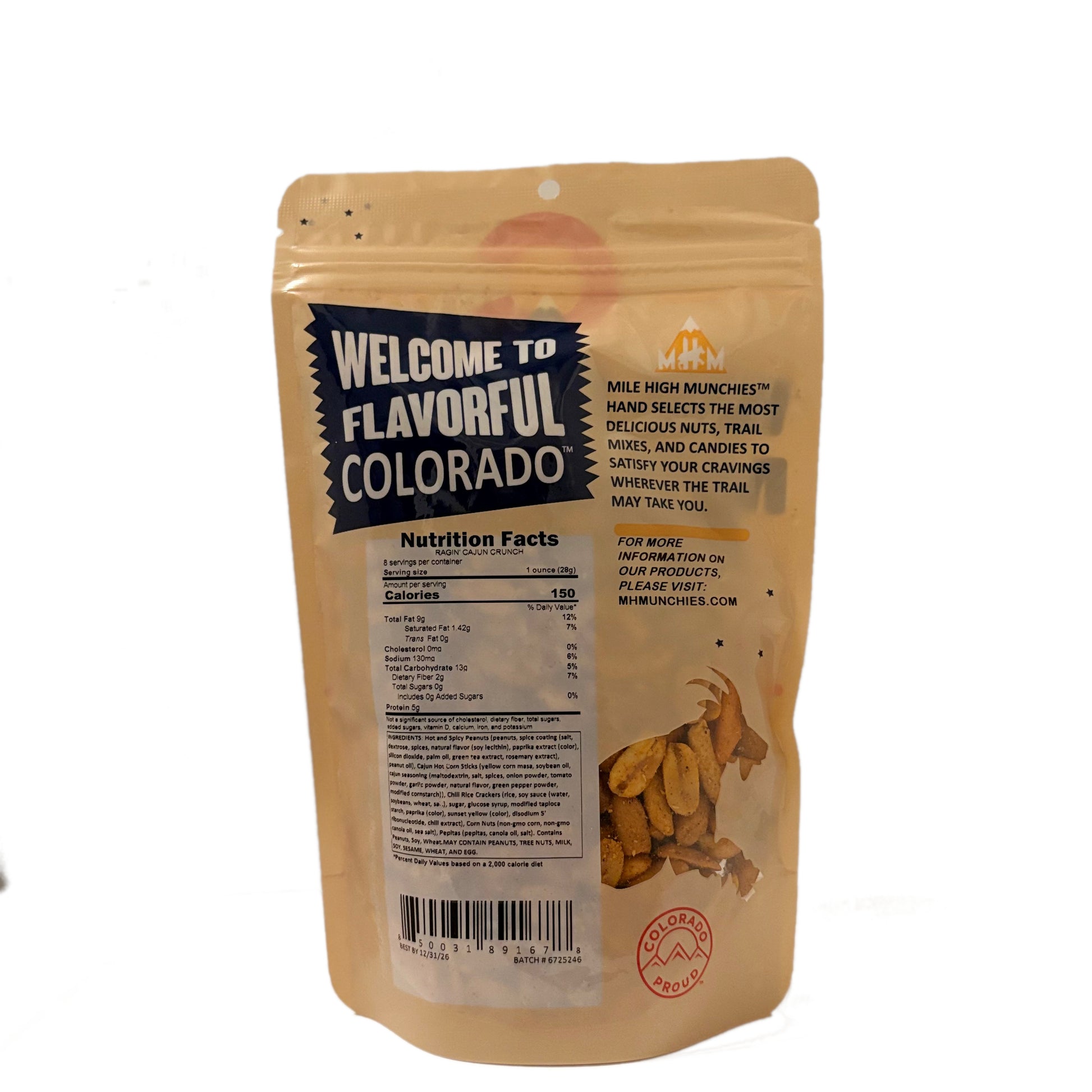 Mile High Munchies Ragin' Cajun Crunch! A spicy mix of Hot Peanuts, Cajun Corn Sticks, Chili Rice Crackers, and Pepitas! Oooo-weee, it's like we're crunching on the Bayou right here in Colorado!