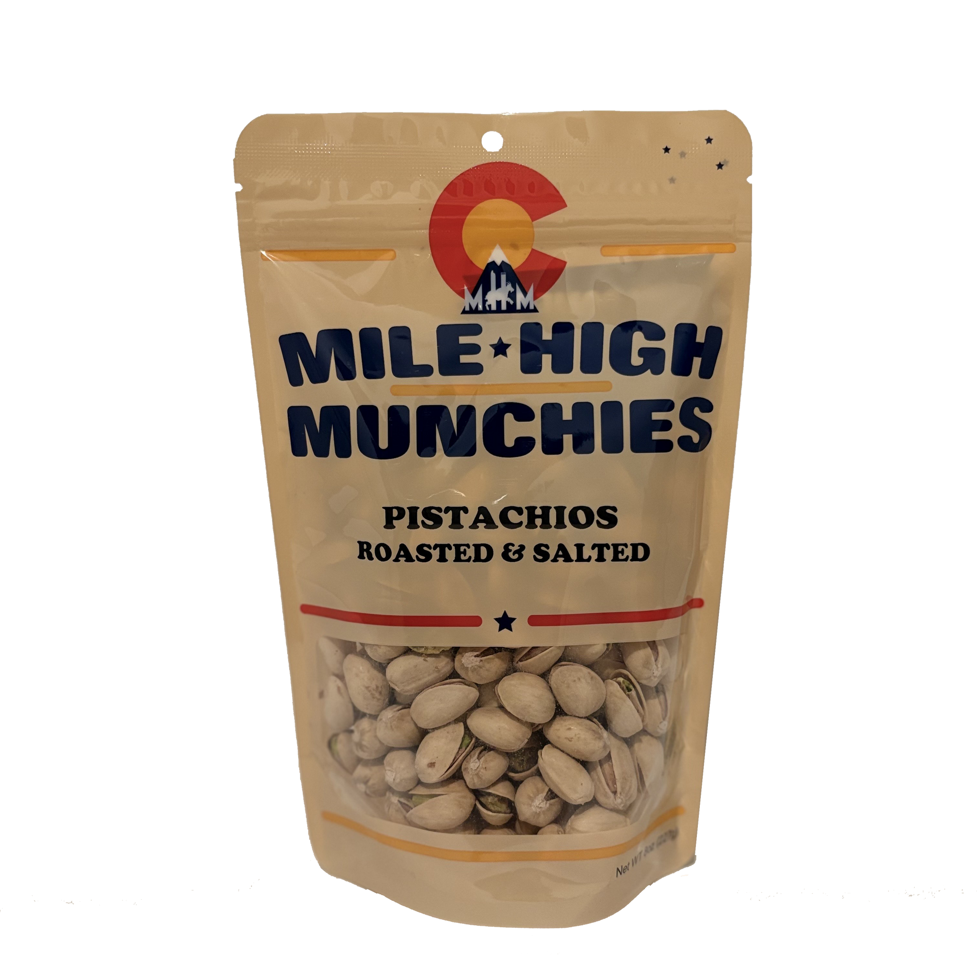 Mile High Munchies Roasted & Salted Pistachios. Have you ever tried eating JUST one? Impossible! Probably the world's most delectable nut.