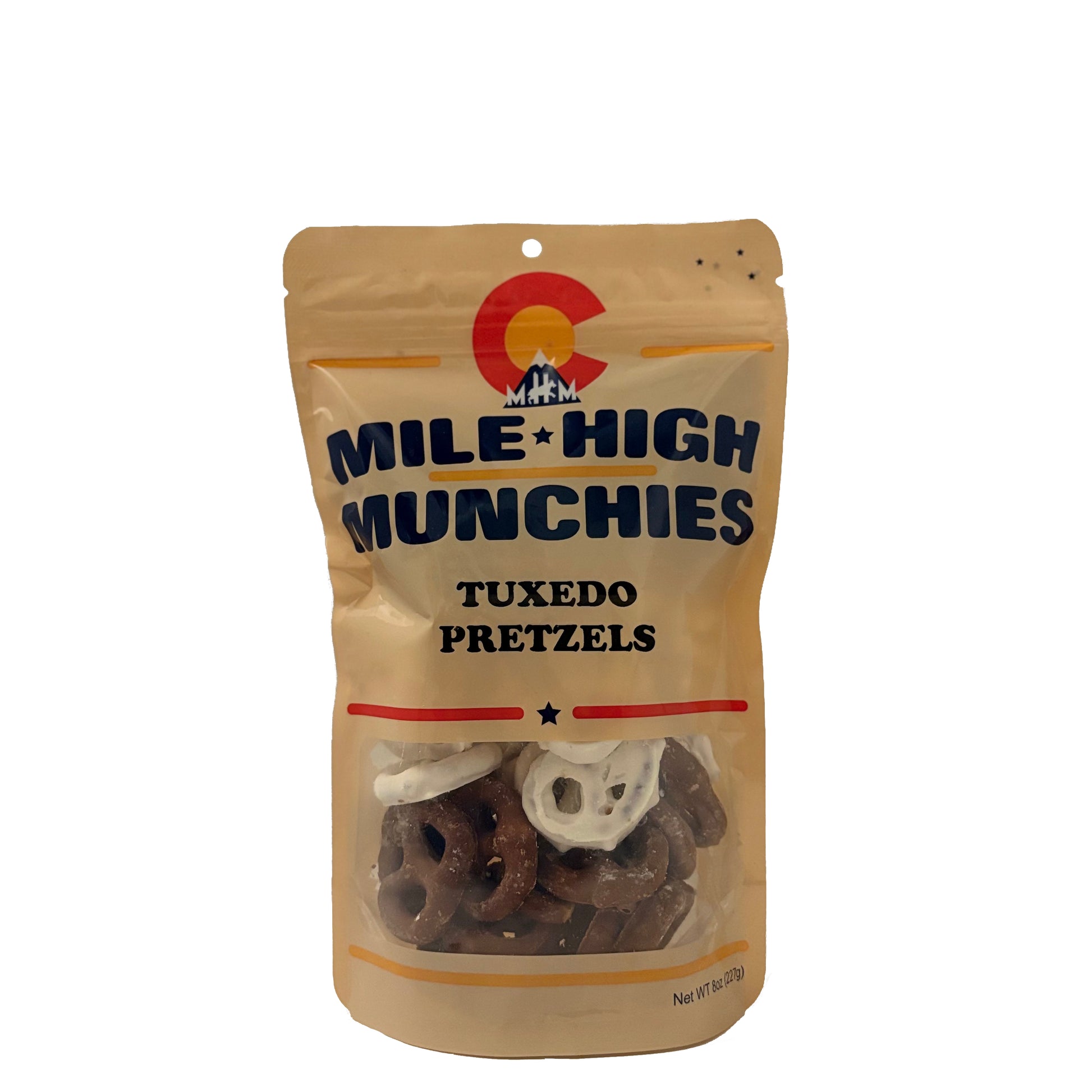 Mile High Munchies Tuxedo Pretzels - What's not to love? A balanced mix of Yogi Pretzels and Chocolate Pretzels, like a cosmic Yin/Yang of deliciousness.